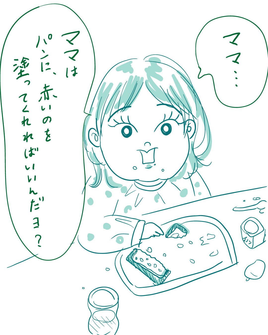 毎日朝ごはんはいちごジャム塗ったパンを食べたがる。栄養面でせめてと思いチーズやしらすを乗せたらこのセリフ。