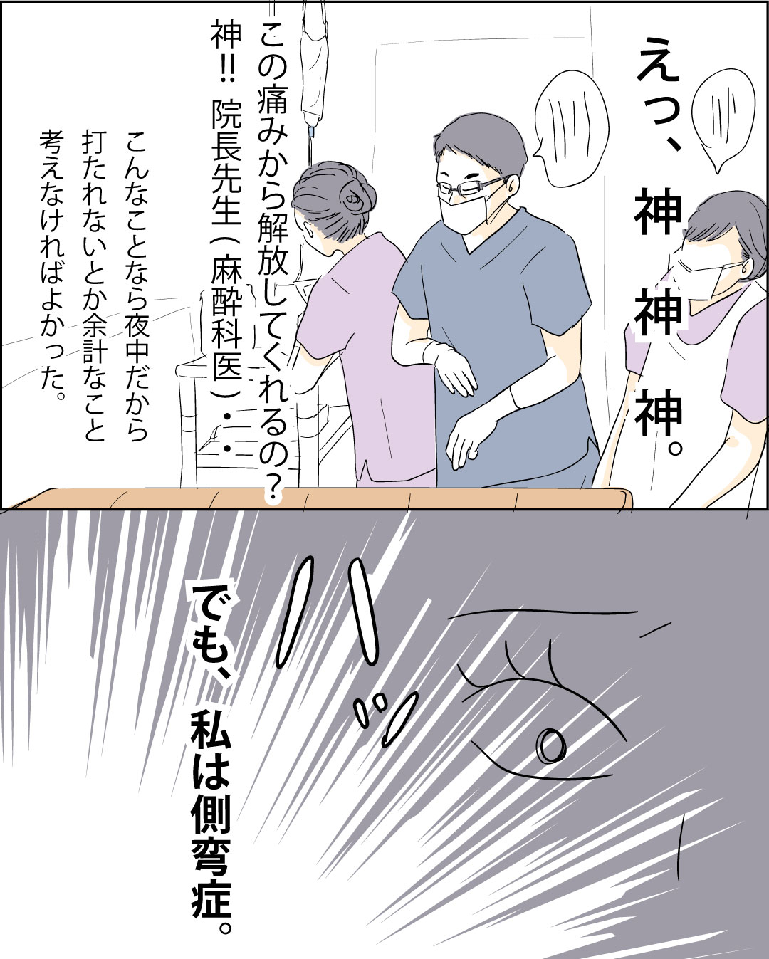 が、S字側弯症なので麻酔を打つ時のリスクを思い出すと今度は不安でいっぱいでしたが、先生方のおかげで無事に山を越えることができました。